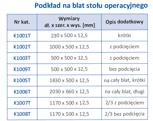 ← „Podkład na blat stołu operacyjnego”